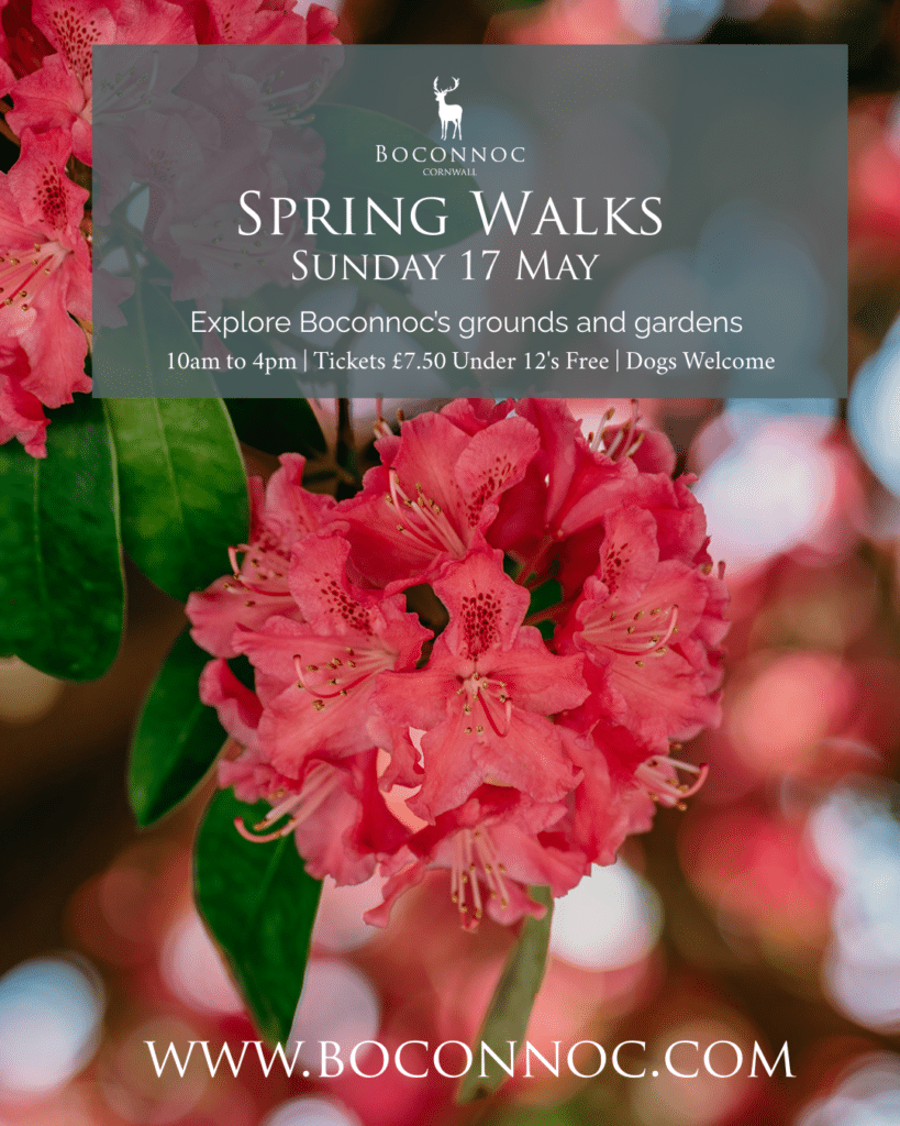 Boconnoc House will be open and serving light refreshments, including home-baked sweet and savoury options and Cornish cream teas – add a glass of sparkling wine as a Mother’s Day treat.