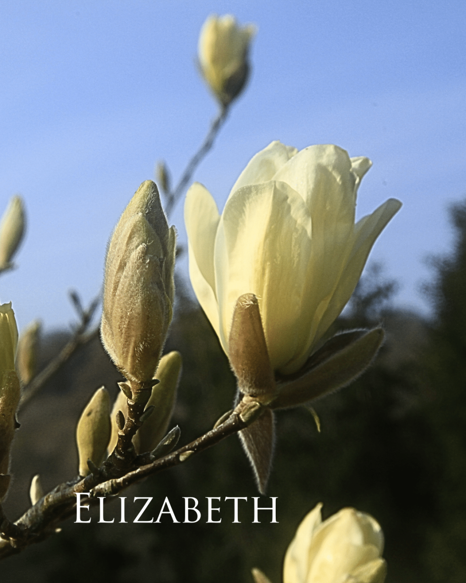 The yellow magnolias, with butter and primrose shades, result from a Sino-American alliance between Magnolia denudata and Magnolia acuminata. Gold Star forms a rounded tree, while Elizabeth and Star Wars grow tall and vigorous, making a bold vertical impact each spring. Star Wars in particular commands attention. Early flowering, strong in habit and unapologetically bold, it stands as a testament to modern hybridisation.