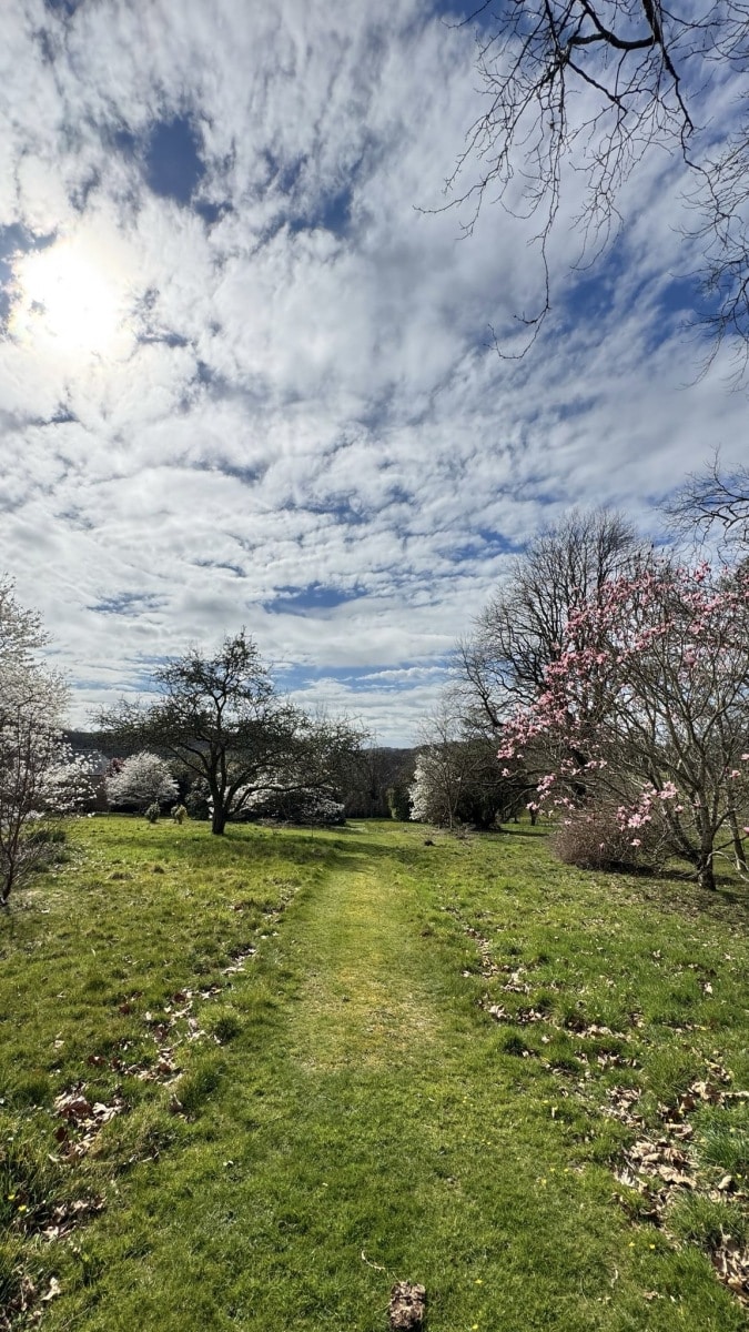 Today, the Dorothy Garden mixes historic formality and naturalistic planting, a cherry avenue, grass paths lined with long grass and wildflowers, and soft tree textures that add a dreamlike movement and intimacy.