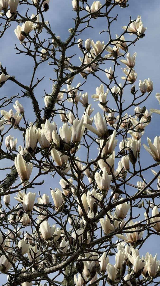 Entering from the south, visitors first encounter the salicifolia types, with elegant white flowers carried on bare branches in early spring. Among them are x Proctoriana and Wada’s Memory, often described as one of the finest white magnolias, refined, luminous and queenly in form.
